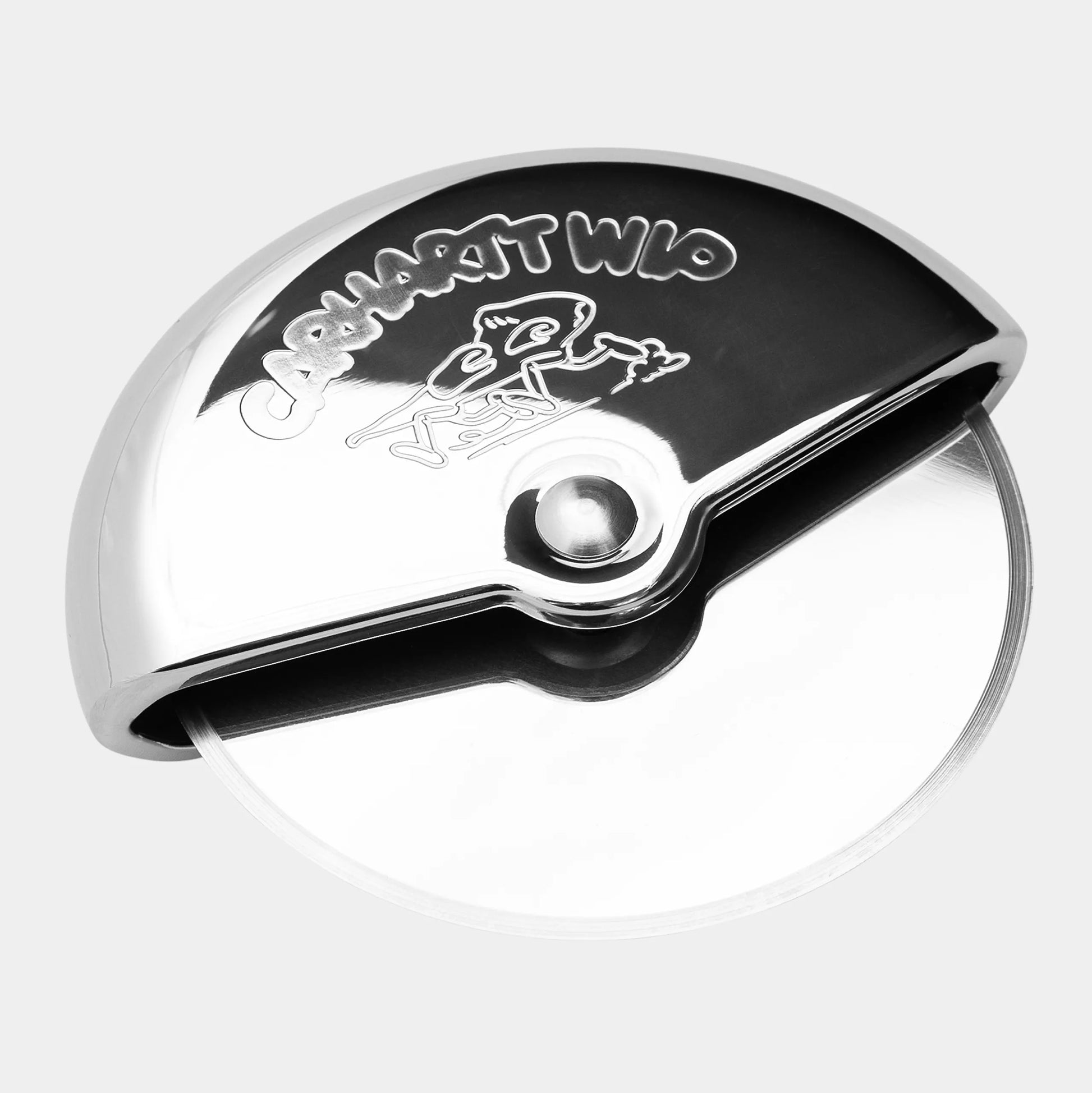 Il Pronto Slicer presenta manico in acciaio inox e incisioni grafiche davanti e dietro, ed è dotato di una lama affilata e rotante.