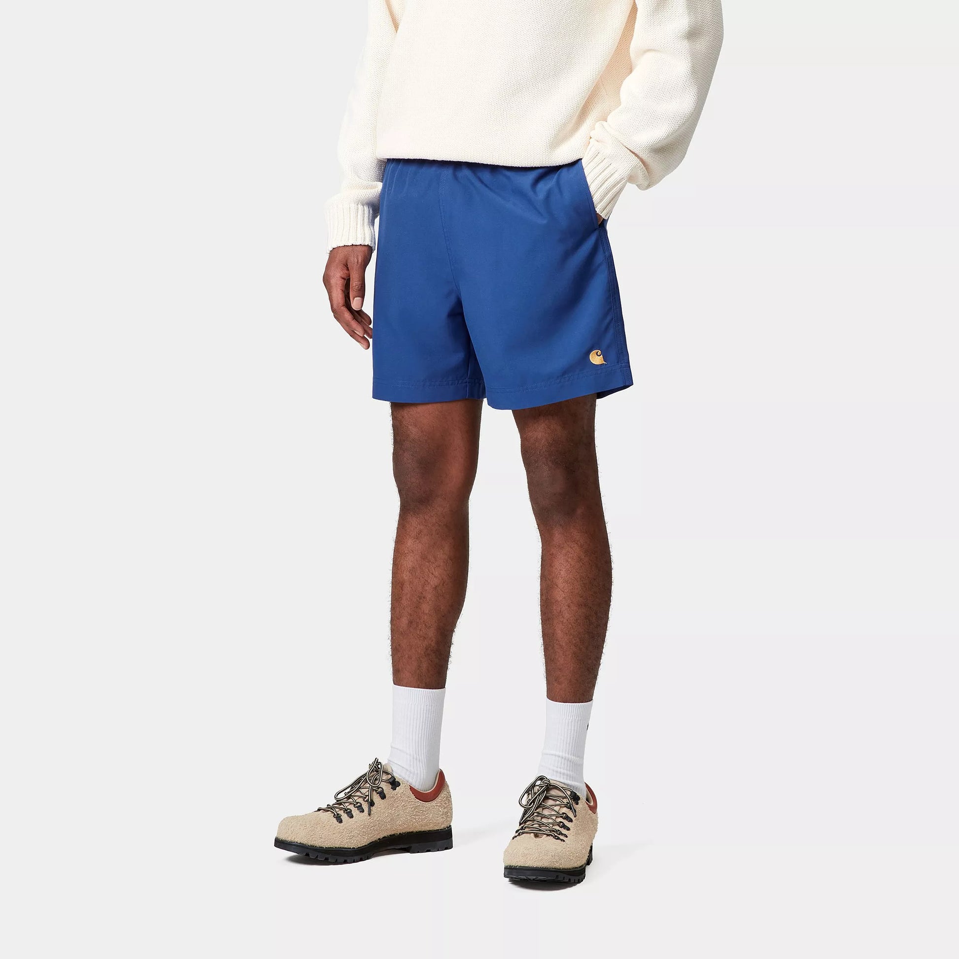 I Chase Swim Trunks sono realizzati in leggero tessuto di poliestere con caratteristiche impermeabili e ad asciugatura rapida. Presentano inoltre fodera interna in rete. I costumi da bagno sono caratterizzati da due tasche laterali inserite nelle cuciture e una tasca posteriore con portachiavi. Sulla gamba sinistra campeggia il ricamo del logo “C”.