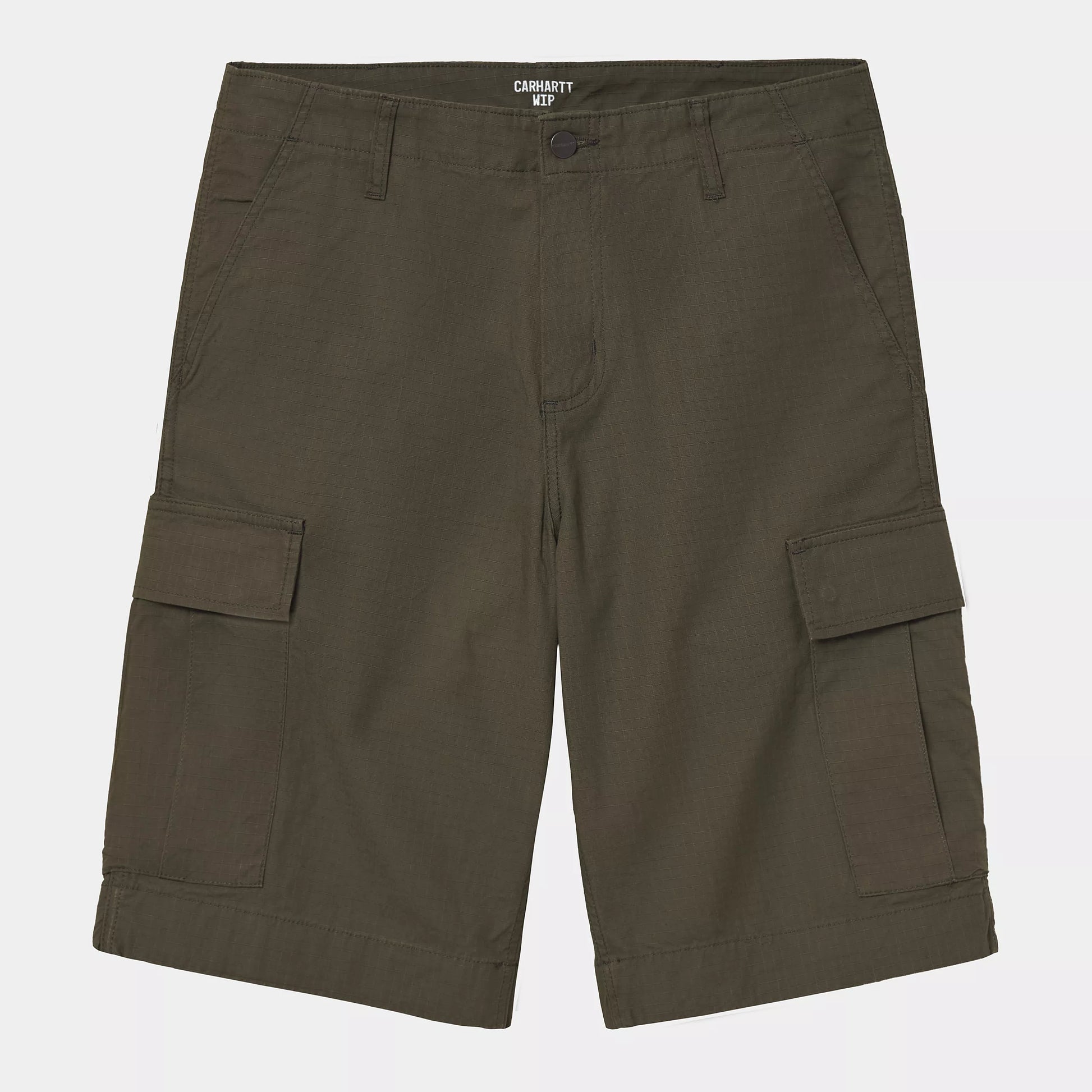 Il Regular Cargo Short è realizzato in cotone leggero ripstop. Questo tessuto altamente resistente è stato lavato per maggiore comfort senza comprometterne le qualità. Presenta numerose tasche e un'etichetta Carhartt WIP intessuta sulla tasca della gamba destra.