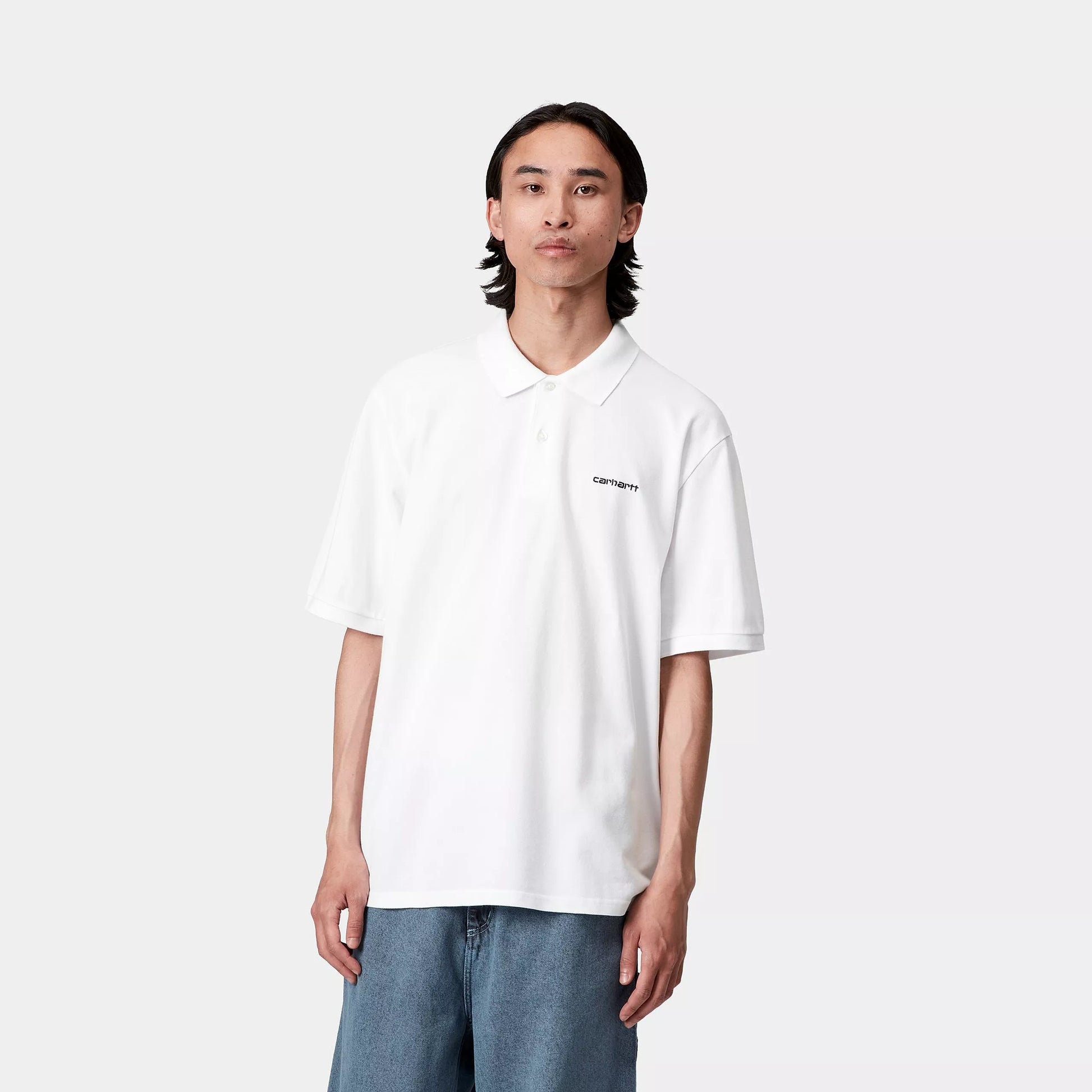 La S/S Carhartt Script Polo è realizzata in cotone piquet di medio peso sottoposto a lavaggio e caratterizzata da vestibilità ampia. Sul petto campeggia un ricamo del logo.